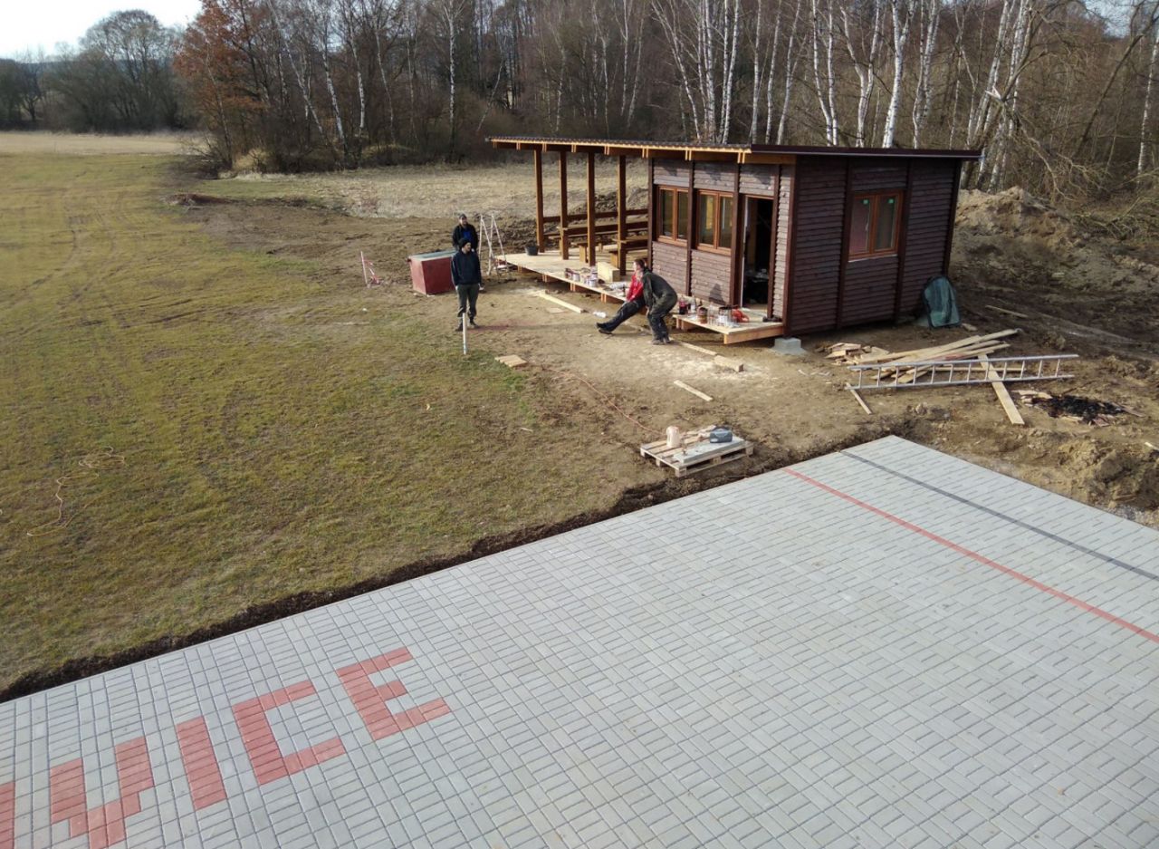 Před turistickým přístřeškem hasiči svépomocí položili zámkovou dlažbu.